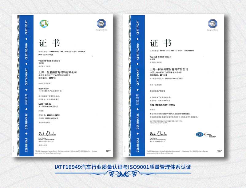 SealTex上海一柯索拓密封材料有限公司長期致力于各行業(yè)用100%無石棉環(huán)保密封墊片和耐高溫隔熱產品的生產及銷售,作為高新技術企業(yè)和專精特新認證單位,參與國家多項與密封墊相關的標準制定,可協(xié)助客戶進行密封失效分析如面壓測試和有限元分析,密封墊的設計與選擇。