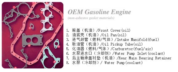 在OEM配套的汽油機市場中,正確選擇墊片材料選喲對材料的設(shè)計性能和應用的部件結(jié)構(gòu)有充分的了解。最重要的是材料的性能一定要滿足甚至超過發(fā)動機的應用要求。因特費斯墊片公司在為用戶選擇和推薦材料產(chǎn)品時,我們不僅對選擇的部件作全面詳盡的分析,并且對選擇的材料進行仿真性的測試,為保證材料產(chǎn)品應用的可靠性。