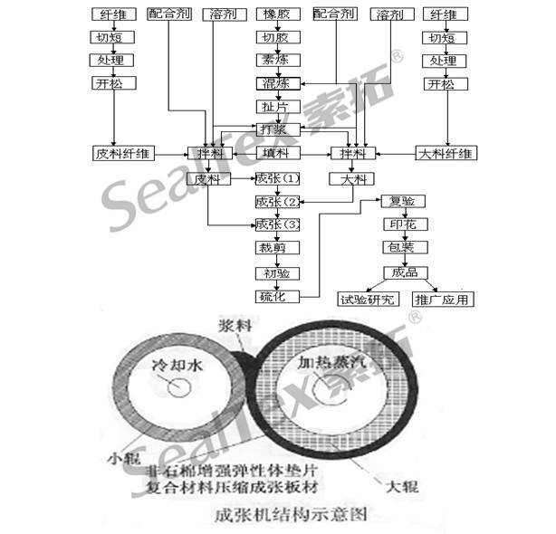 生產(chǎn)無石棉墊片材料的工藝按材料的類別而各有不同,目前在國(guó)內(nèi)使用比較廣泛的有兩種,輥壓工藝和抄取工藝。以下是對(duì)這兩種工藝的簡(jiǎn)介: