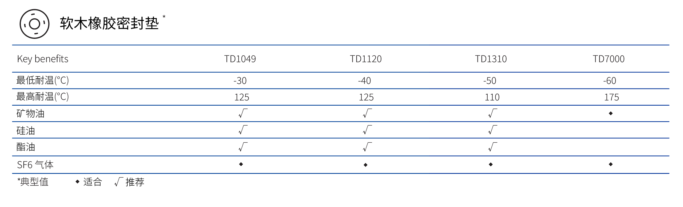 AMORIM阿莫林軟木橡膠密封材料TD1120、TD1049、TD1310、TD7000因其良好的機械性能、耐變壓器油等特性廣泛應用于變壓器行業(yè)。詳細參數(shù)如下: