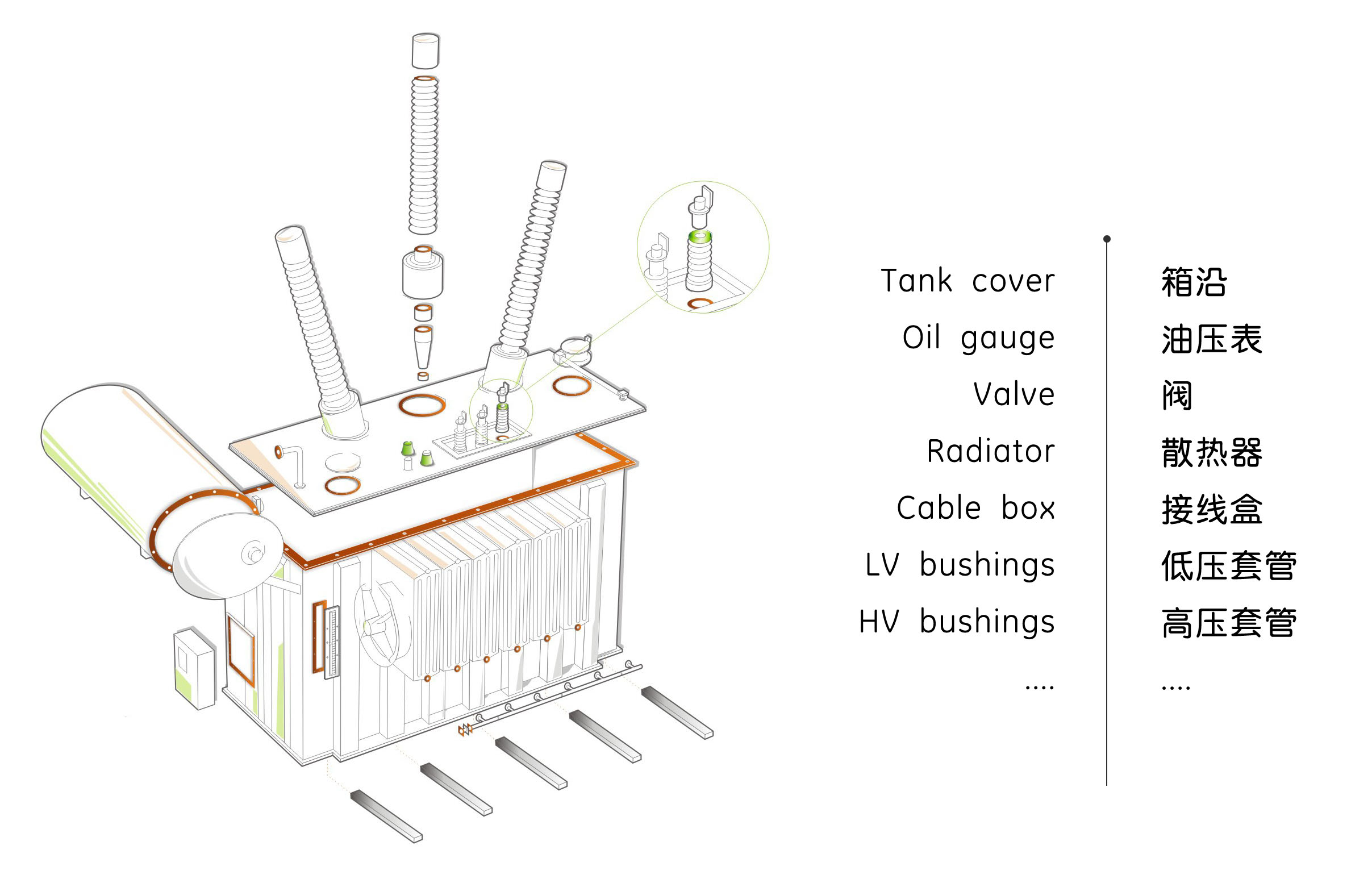 軟木密封墊廣泛應用在變壓器中,在法蘭與蓋板之間形成可靠的密封。這些區(qū)域需要能夠承受機械應力、熱膨脹以及耐變壓器油的材料。我們通過將軟木與橡膠結(jié)合提升了材料的柔韌性和耐受性,提供了一種可靠的解決方案,既能有效減少泄漏,又能長期保持結(jié)構(gòu)完整性。